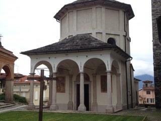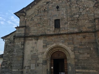 Complesso monumentale romanico caratterizzato dall’ampio Sagrato racchiuso dai portici della Via Crucis su cui si affacciano la Chiesa, il Campanile ed il Battistero.