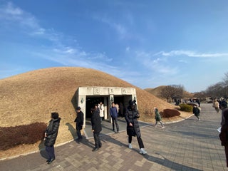 Here, it is Cheonmachong (天馬塚) where is the mount tomb of an unknown king living in around 5 - 6 century. Most relics are made from pure gold, including a gorgeous crown.