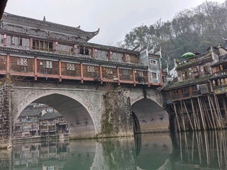 Hongqiao Wind and Rain Bridge: The bridge has three arches, the height from the river surface to the top of the bridge compares a couple of floors.