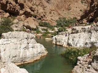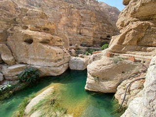ابتدای مسیر را با قایق باید بری و بعد از اون یک مسیر پیاده روی زیبا و آب تنی در رودخانه س ..در مجموع کوههای عمان و دره های بینشون زیبا و دیدنی هستند و تا حدود زیادی شبیه ایران اما پر از توریست !