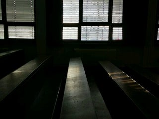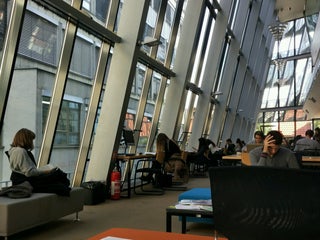 Try to come with public transportation. No (free) parking lot unless you're a teacher. Cafeteria serves pretty fine food, a bar in the corner is cool, also.
