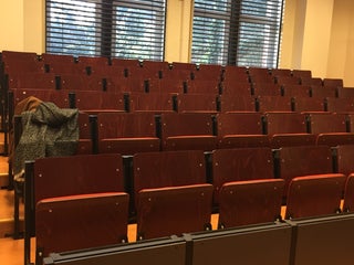 Benen strekken niet mogelijk! Slechte aula, zeker als je 2 uur aan een stuk er moet zitten.