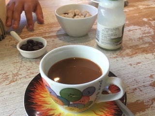 Net een sappige drol gelegd in hun koffiebonen apparaat, ik raad je aan om tijdelijk geen kopje koffie te nemen in dit tentje.