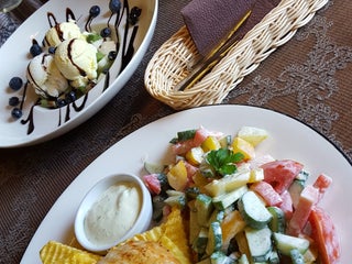 Salmon with fresh salad is just amazing and all for 8 euros! Highly recommend!