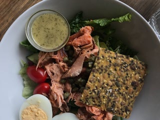 Get a salad you get coffee and bread with it which is a great deal. Desserts are all delicious!! Damn good cup of coffee.