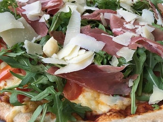 Die frisch zubereitete Pizza essen.