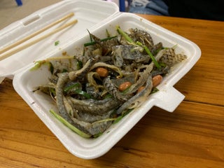 粥7塊,豬腸粉3塊,粥內容很豐富。魚皮22一盒。