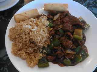 Moo Goo Gai Pan lunch special with fried rice, spring roll and wonton soup is really yummy, super filling and a great price.