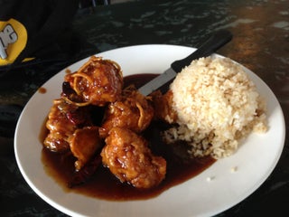 Orange beef is very sweet and mostly breading.