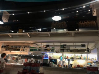 Прекрасный итальянский ресторанчик. Работает 24 часа. Wi-Fi, розетки в каждом диванчике, что очень удобно. Вежливый персонал. Фоном играет музычка Parov Stelar. Мило,уютно,приятно)