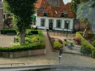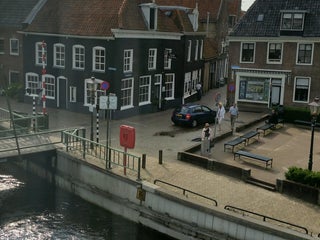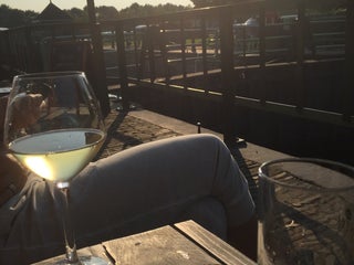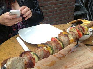 Heerlijk eten en gezellig zitten op het terras met uitzicht op de bedrijvigheid in de sluisje.