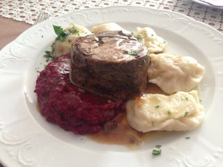 Some nice vegetarian choices: potato golabki and garlic soup. Some members of the staff very friendly and professional, some surprisingly rude.