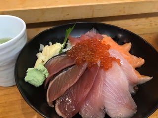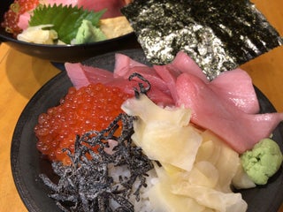 まぐろいくら丼1480円を食べました。ごはんはやや少なめ。私はちょうど良かったけれど、男性の人は足りないかも。