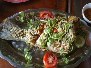 Try the giant prawns steamed with garlic, tom su hap. Giant local mussels good too.