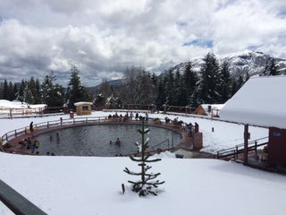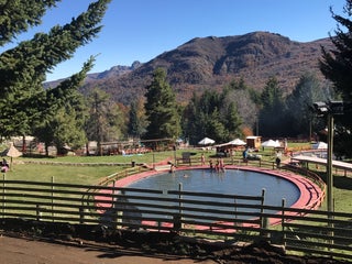 Las termas exquisitas, cabalgatas familiares (8.000 p/p), hay un restauran pero un poco caro, mejor llevar comida y comer en las mesas de picnic. Lo malo es q hay solo una micro y es a las 8am.