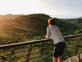Try the local red wine. Great food and views. Romantic place for outdoor dining but great for families too. Can be quite busy so best call ahead and reserve.