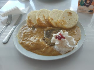 Pumpa krásně opravená, vše svítí novotou. Tím klady končí: špinavé stoly, jídla z polotovarů a protivná obsluha od další zastávky odrazují.