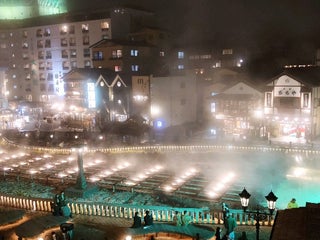 なかなかいいかも、草津温泉。このホテル湯畑の真ん前やし、満足。