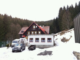 Snaží se penzion postupně modernizovat, ale ještě je čeká dost práce.Když není sníh, lyže se musí na sjezdovku donést.