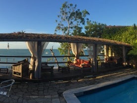 A pousada fica em ótima localização. Na área de lazer da pousada tem uma varanda com uma vista perfeita para o mar.