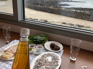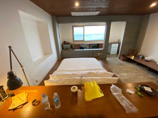 시간이 멈춘듯한 숙소. 하나하나 고심해서 고른듯한 소품과 담백한 배려가 느껴짐. 늠름한 행복이가 101호 앞을 지키고 있어요