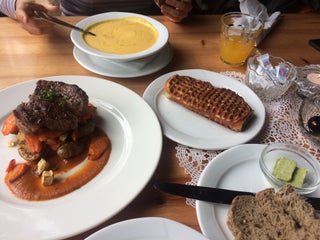 Very nice view. Very nice food. Rømmegrøt og spekemat
