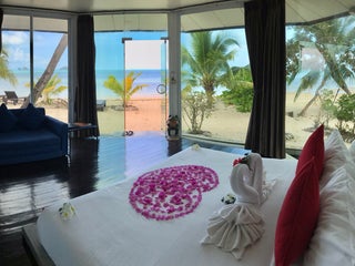 The sunset view is beautiful and the rooms are right next to the beach. Great service and good food. HAPPY HOUR starts from 4-7pm.