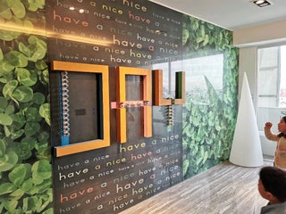 Don't miss checking out the "have a nice day"design every floor.