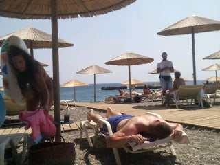 This is one of the beaches that are protected by the wind since it lies in a small gulf. Service is good. Sun beds are a bit expensive but you can deduct their fee from the hotel’s restaurant.