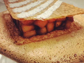The food is earthy yet refined, perfectly suited to the elegant country setting: asparagus on truffle coulis with foie gras "ice cream," and baby squid with tiny beef raviolis.