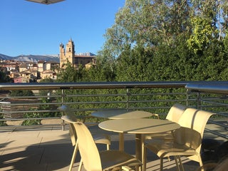 Vue superbe sur la terrasse. Cadre atypique crée par Gehry.