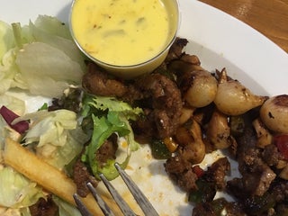 Gir 2 av 5. Forsøkte dagens skinkestek. Tørt, smakløst kjøtt. Poteter som bar preg av å bære ferdigkokte. Pluss for uteservering.
