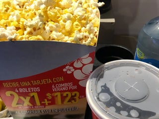 Fui por palomitas Cheetos y no había 😢. Los anuncios duraron 20 minutos y la sala estaba sumamente fría. 👎