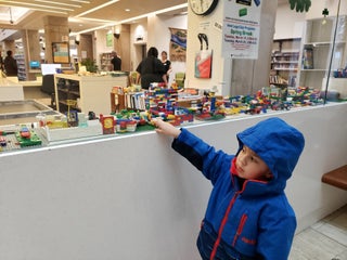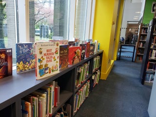 The kids section has a good variety for all ages and severalbtables where tonread or play. Weekends look a little bit more busy