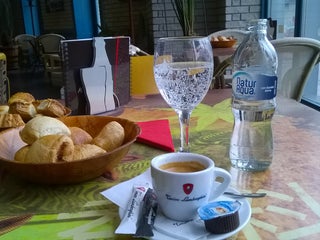 A galérián a nyelvi könyveknél a legjobb a wifi, kellemes hátérzajt ad a tanuláshoz a Frei kávézóból felszűrődő darálás, gőzölés, csészecsörömpölés.