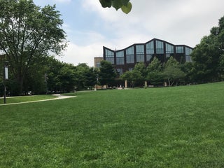 Beautiful spot for a picnic along the Oak Park library