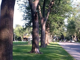 Park is lined with Silver Birch trees. Each has a small plaque at the base to honor the sacrifice of each of the town of Saint Lambert's fallen sons in WWI.