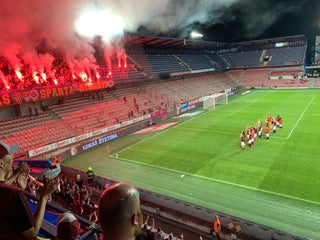 Good stadium, stands shake when in upper section. Long walk up a hill from central Prague