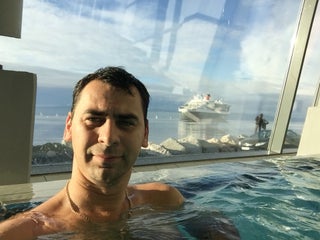 Great swimming facilities, sauna, outdoor bubble bath, and huge water slides.