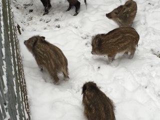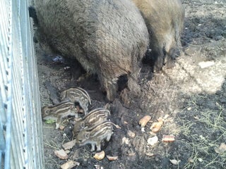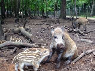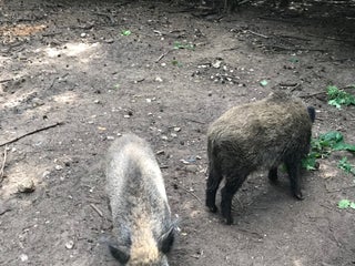 Füttere die Wildschweine mit rohen Spaghetti.