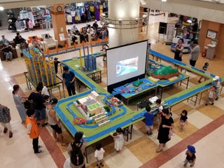普段は中央の柱を囲む形でソファーが並んでおり、サラリーマンや買い物客の憩いの場である2階のつばさ広場では、週末や休日になるといつも楽しい催し物が開かれています。