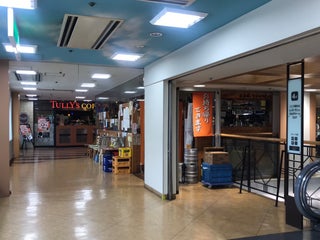 よくある郊外のこぢんまりした商業施設。丘陵地帯なせいか、駅の反対側との高低差すごいですね。