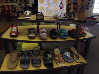 Check out the wide selection of Danskos. And say hi to Winston the dog!