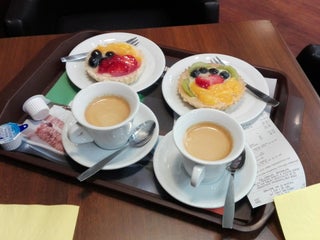 Dobrá káva, zákusky slabé. Cheesecake á la Globus je cvibachový základ s jakousi tvarohovou pěnou. Fandím jim, ake tom by měli zapracovat.