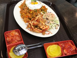 Huge H Mart with everything you need. Great sales. Marinaded meat in whatever size you want.
