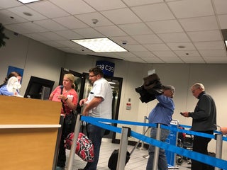If you are rushing to get here the gate is at the far end. If you need to there are vending machines for last minute snacks.