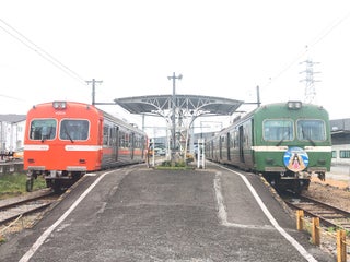岳南電車の終着駅。無人駅で券売機の設置無し。基本的に駅舎から遠い方のホームに到着し、そのまま折り返す。近い方のホームはイベント列車等で使われ、何もない日は車両が留置されている。