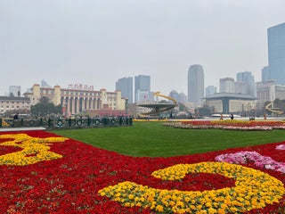 Main square in Chengdu. God-Mao statue watching over the city. Interesting place to people watch.